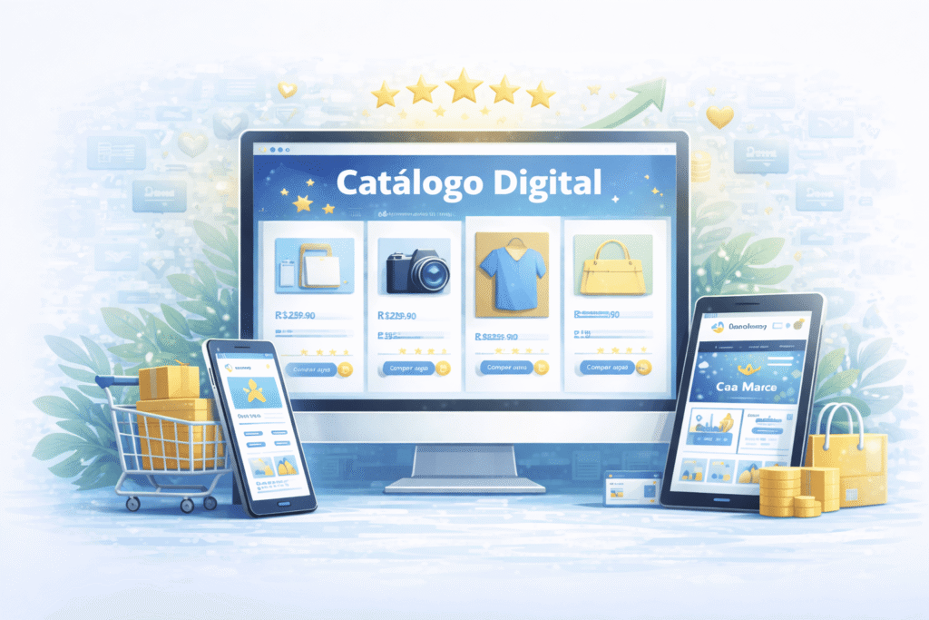 Soluções desenvolvidas para organizar seus produtos em um catálogo online, com imagens, descrições e integração com seus canais de venda.