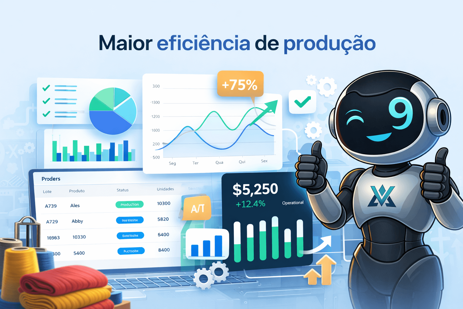 Tecnologia preparada para rotina industrial e controle têxtil.